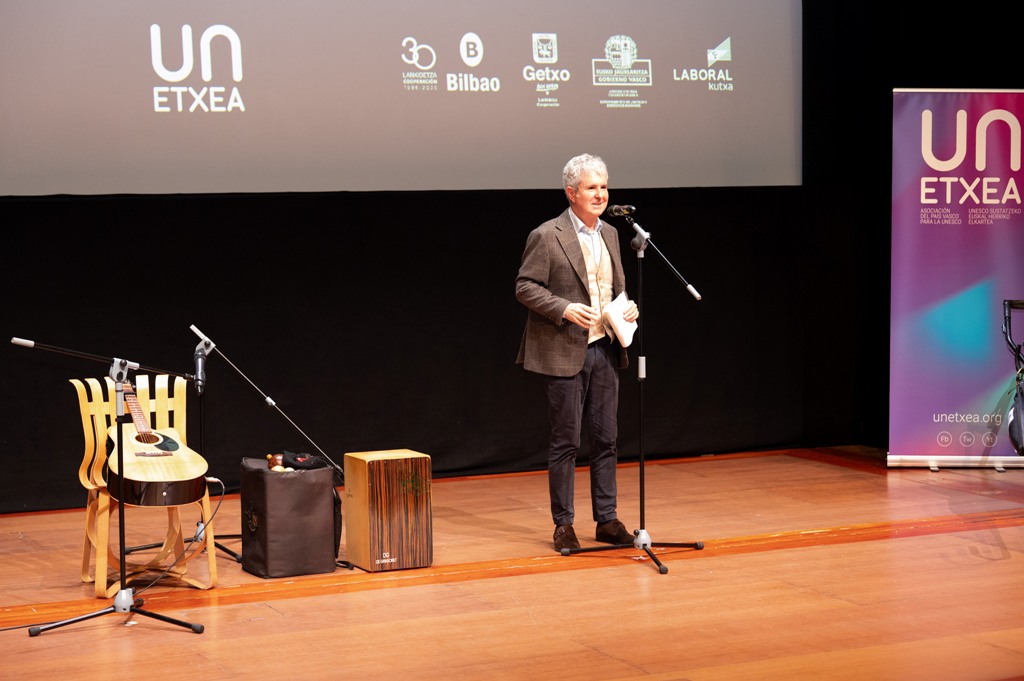 2 December, 2025Guggenheim Bilbao Museoko auditorioa giza eskubideen inguruko gogoetarako eta ospakizunetarako gune bihurtu zen joan den azaroaren 29an, Jose Miguel Llanok zuzendu eta Katxarreris Filmsek koproduzitutako “Ezina ekinez egina” dokumentalaren estreinaldiarekin. UN Etxeak antolatu zuen ekitaldia, Bilboko Udalarekin, Getxoko Udalarekin, Eusko Jaurlaritzako Biktimen eta Giza Eskubideen Arretarako Zuzendaritzarekin eta Laboral Kutxarekin lankidetzan, eta sortzaileak, ekintzaileak eta askotariko publikoa bildu zituen, artearen eta kulturaren botere eraldatzailea berresten duen Fair Saturday Jaialdiaren ekitaldian.